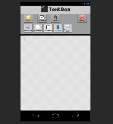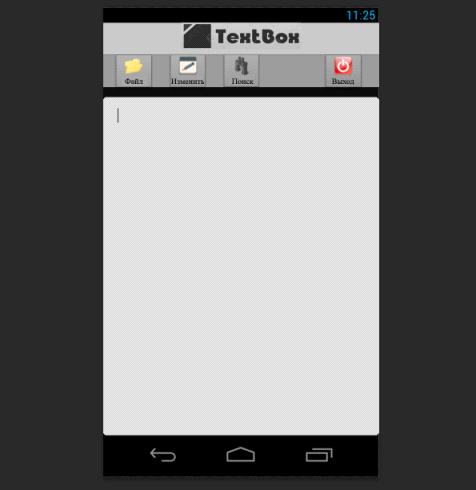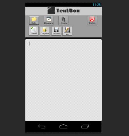 экран название текстового редактора в шапке «TextBox» и кнопки Файл,