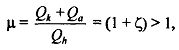 где Qk - тепловая нагрузка конденсатора, Qa - тепловая нагрузка абсорбера, Qh - тепловая нагрузка генератора, ξ - тепловой коэффициент холодильной машины.