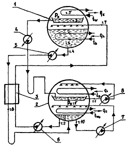 конденсатор; 3 - испаритель; 4 - абсорбер; 5 - теплообменник Тh Та