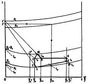 На пересечении линий Ра и находится точка 2*, характеризующая состояние раствора, выходящего из абсорбера в теоретическом цикле, точка 2 - действительное состояние.