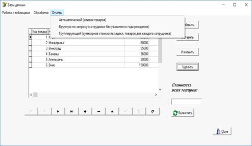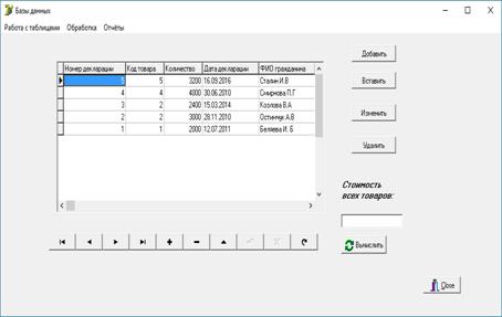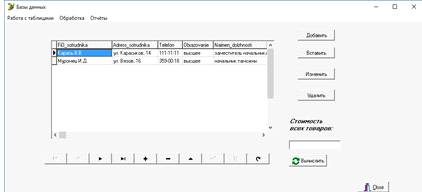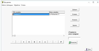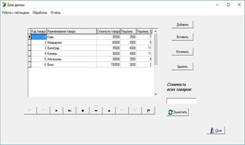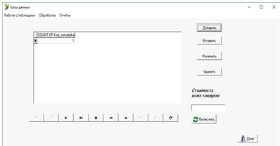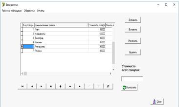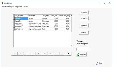 данных в таблице и окнах редактирования; вычисление значения вычисляемого поля;
