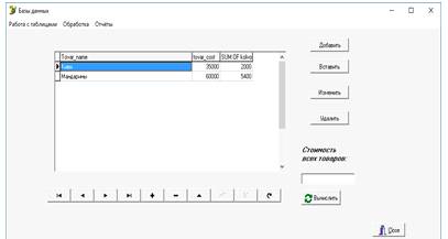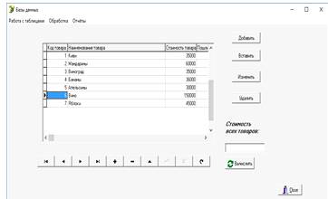 базой данный, обеспечивают удобное взаимодействие пользователя с программой.