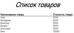 Выдать список товаров (наименование товара, стоимость), с указанием его