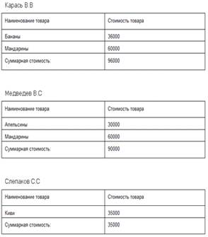 указанием суммарного количества задекларированных товаров (каждым сотрудником)