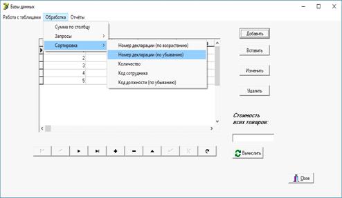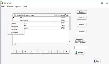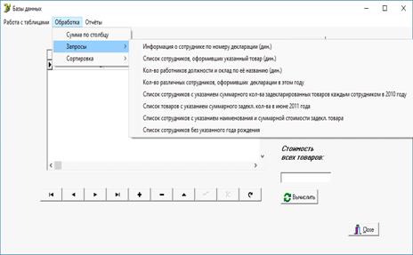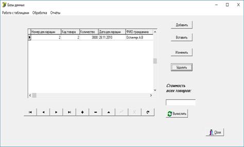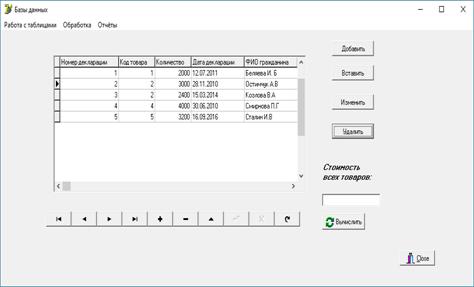 В среде Delphi 7 было создано приложение БД, реализующее следующие