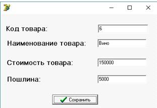 База данных состоит из 4 связанных таблиц: Товары, Декларации, Персонал, Должности.