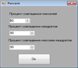 Процент совпадения квадратов. Этот параметр задает процент совпадения при сравнивании одной картинки с другой. Параметр изменяется от 1 до 100.