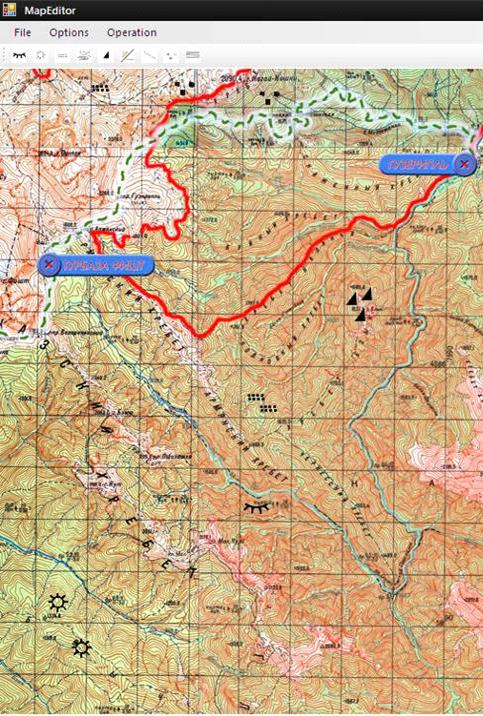 Кроме того, в программе существует возможность наносить топографические знаки. Процесс нанесения знаков представлен на рисунке 4.8 и происходит так: