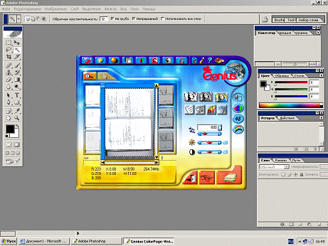 настроек Файл → Импорт → Twain Acquire… , появляется окно сканера Genius с тремя главными кнопками (выход,