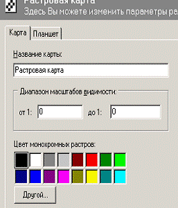 «Планшет». В закладке «Карта» вводим название «Растровая карта», а в закладке