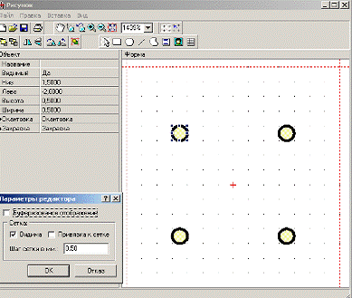 Нажимаем на кнопку рисунок и появляется окно Рисунок. Где рисуем условный знаки с помощью необходимых инструментов. Выбираем необходимую окантовку, закраску и шаг сетки с помощью команды Вид- Параметры.