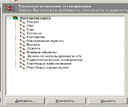 Топологические отношения - это пространственная взаимосвязь между объектами. Определяя в ГИС топоотношение между двумя слоями, мы, тем самым, определяем реакцию объекта одного слоя на изменения объекта из второго слоя.