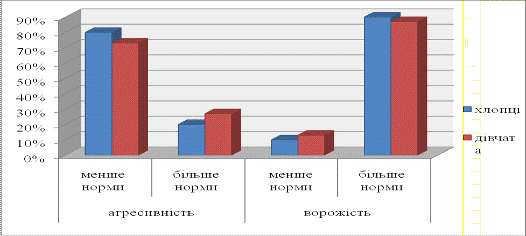 . Підлітки у яких ворожість більше норми спрямовані на діло.