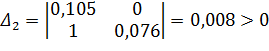 Першому критерію воно задовольняє, як бачимо всі коефіцієнти більші нуля. Складемо визначники Гурвіца:
