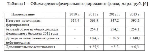 . Дорожные фонды: Бюджетный кодекс РФ от 30.11.2011 № 361-ФЗ // СПС «Консультант Плюс». - 2011. - № 68. - Ст. 179.4.