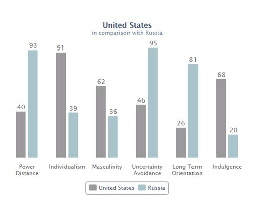 Рисунок 5. Значения этнометрических параметров Г. Хофстеде