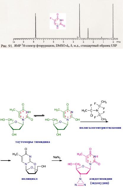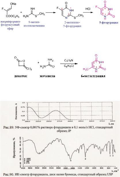 Химическое строение 5-фторурацила установлено данными УФ-, ИК- и ПМР-спектров (см. рис. 89-91).