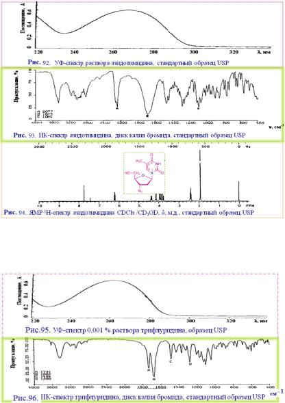 Строение азидотимидина (зидовудина) и его физико-химические свойства подтверждены данными УФ-, ИК- и ЯМРспектров (см. рис. 92-94).