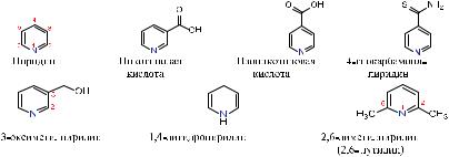 лоты (кислоты изоникотиновой), 4-тиокарбамоилпиридина (кислоты тиоизоникотиновой), 2,6-диметилпиридина, 1,4-дигидропиридина и 3- оксиметилпиридина: