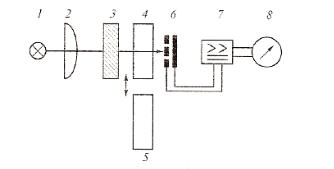6 – фотоэлемент; 7 – усилитель; 8 – регистрирующий прибор