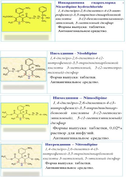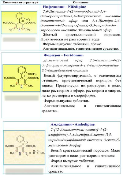 Различные лекарственные формы субстанции нифедипина (6) широко используется для лечения стенокардии и гипертонии (см. табл. 3).