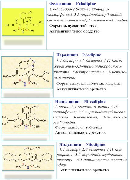 Лекарственные вещества группы производных 1,4-дигидропиридина