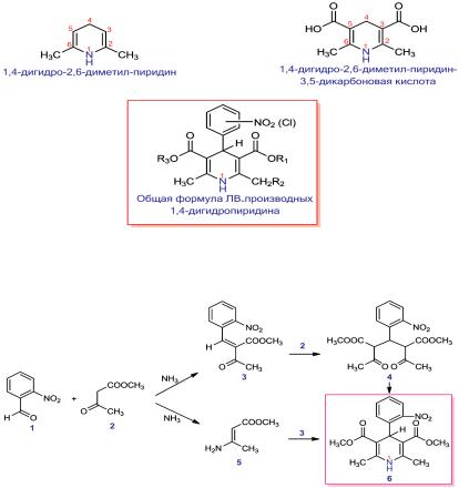 ние кольца дигидропиридина. Кроме того, в данных условиях ацетоацетат может перейти к форме имина (5), который с продуктом реакции альдолем