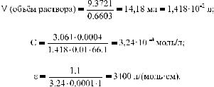 Вточках максимума мольный коэффициент погашения вычисляют по формуле: ε = А/(C·l).