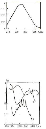 Рис. 9. УФ-спектр бензола (А), фенола (Б), анилина (В)