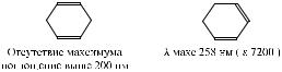 Отсутствие в УФ-спектре исследуемого вещества максимума поглощения в области 200-800 нм служит надежным доказательством того, что в этом веществе не содержатся сопряженные диеновые или полиеновые системы, ароматическое ядро и карбонильная группа. Этот признак часто оказывается полезным при установлении структуры соединения, например, позволяет легко различить изомеры с сопряженными и изолированными двойными связями, как в случае приводимой ниже пары: