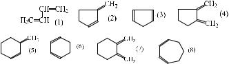 Ациклические диены существуют практически полностью в трансоидной конформации, так как в ней сопряжение проявляется в большей степени, делает её энергетически более выгодной. В циклических соединениях конформация диеновой системы может быть закреплена. При переходе от диена с двумя внутрициклическими двойными связями к изомерному диену с закрепленной трансоидной системой двойных связей наблюдается гипсохромный сдвиг максимума поглощения на 15-20 нм и увеличение мольного коэффициента погашения не менее чем на 10000-12000. В простейших случаях для изомерного диена с другой кон-