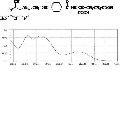 УФ-спектр 0,0015 % раствора кислоты фолиевой в растворе NaOH, стандартный образец JP