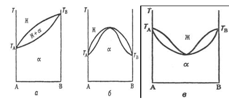 охлаждения типичных сплавов а) - диаграмма состояния сплавов с неограниченной