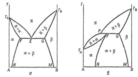 типичных сплавов а) - диаграмма состояния сплавов с ограниченной растворимостью