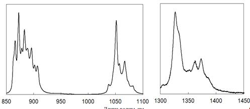 На рисунке мы видим 3 основных пика люминесценции в различных областях полученного спектра. Положение максимальной люминесценции в этой области находится на длине волны 872,45, 1051,14 и 1326,15 нм. Пик на 872,45 нм является самым интенсивным.