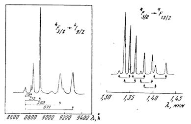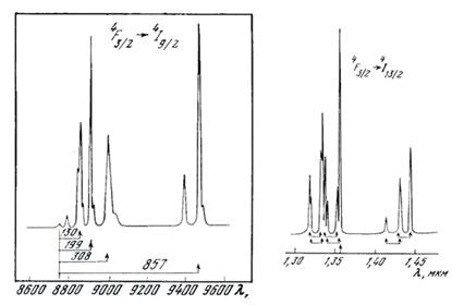 кристаллического расщепления состояний 4F3/2 и 4I9/2-15/2, а также связанные с