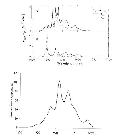 Максимумы в области 1500-1550 нм соответствует переходу между уровнями 4I15/2