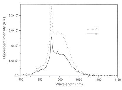 Спектры люминесценции, как и поглощения, различаются в зависимости от поляризации и имеют вид широких полос. Спектры люминесценции образца YVO4: Yb3+ 10ат% в поляризации Е перпенд оси «с» представлены совместно с поглощением. Возбуждение проводилось диодом с λ=965 нм. Методом Фухтбауэра-Ладенбурга было оценено значение сечения люминесценции в максимуме sem(l=1,01 мкм) = (1,75 - 1,9)*10-20 см2, в зависимости от поляризации.