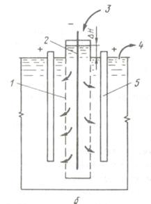 - катодная диафрагма; 2- катод; 3-католит; 4-анолит; 5 - анод