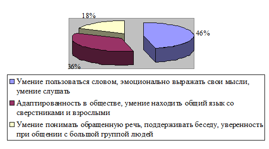 сверстниками и взрослыми» - 36%; «Умение пользоваться словом, эмоционально