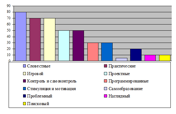 следующими: словесные методы - 80%, практические методы -70%, игровые -70%,