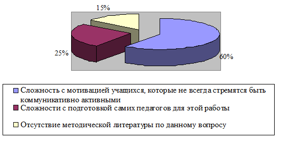 коммуникативно активными» - 60%; «Сложности с подготовкой самих педагогов для
