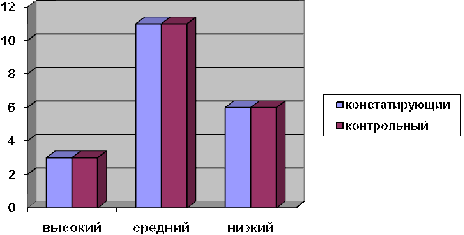 Констатирующий эксперимент показал, что уровень умений грамотно выполнять натюрморт в различных живописных техниках, и художественный анализ картины не достаточно высок, хотя преобладает средний уровень.