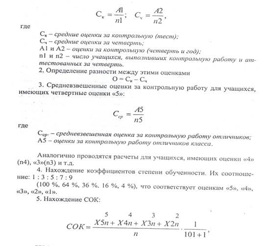 Время проведения проверочной работы -5- 7-10 минут; итоговые, творческие задания рассчитаны на 15-20 минут урока или домашнего задания).Результаты обученности учащихся определялись по трем показателям. Степень обученности класса по формуле В.П.Смирнова[84]: