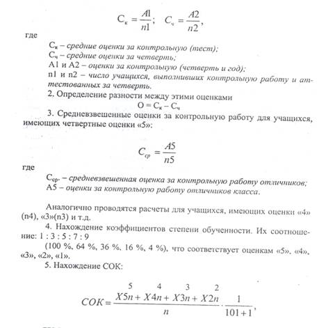 СОК = (п "5" х 100% + п "4" х 64% + п "3" х 36% + п "2" х 16%)/п х 7
