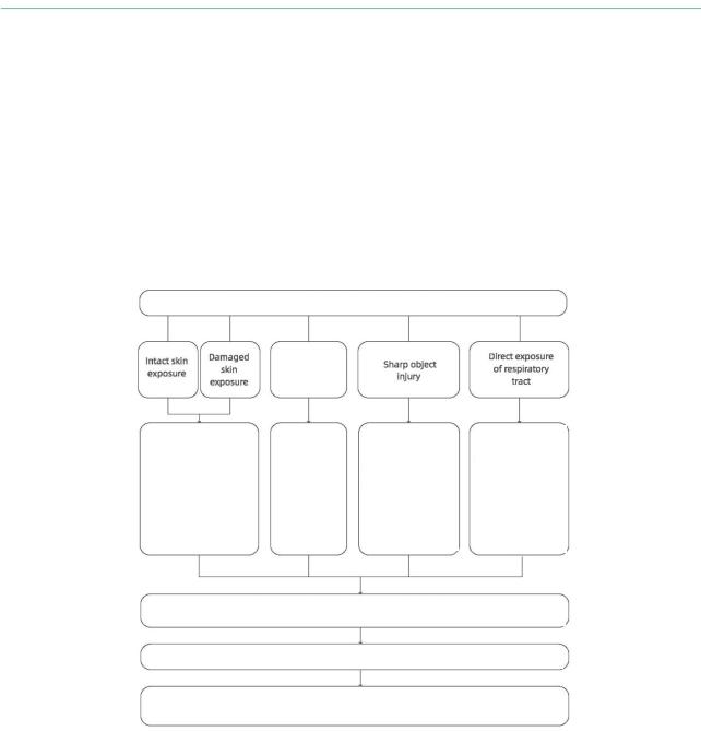 (3)Травма острым предметом: Прокалывание тела острыми предметами, которые находились в непосредственном контакте с биологическими жидкостями пациента, кровью, выделениями или фекалиями.