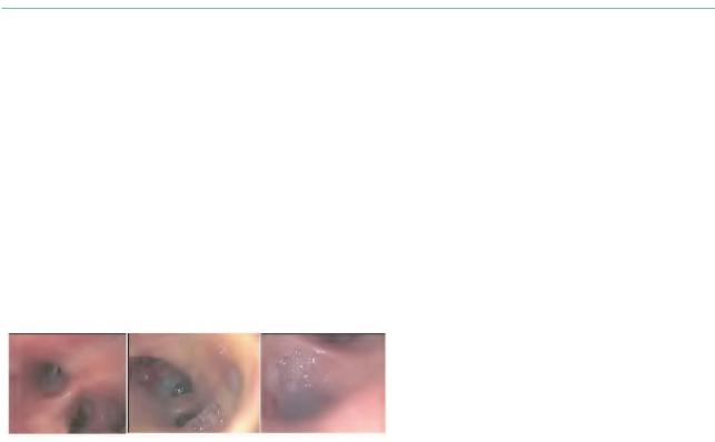 Получение бронхоскопической картины обширной гиперемии слизистой оболочки бронхов, отека, слизевидных выделений в просвете и желеобразной мокроты, блокирующей дыхательные пути у тяжелобольных пациентов (рис. 7).