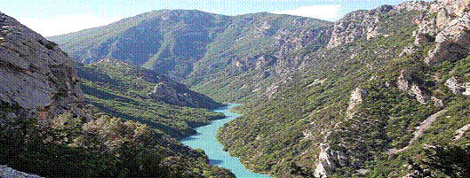 Одно из наиболее известных в Европе - ущелье Вердон на юге Франции, проложенное одноименной рекой в толще известнякового плато (рис. 3) Его отвесные стены местами вздымаются на 700-метровую высоту. Считается, что когда-то река Вердон была подземной и ущелье образовалось отчасти в результате обвала залегавши над ней пород.