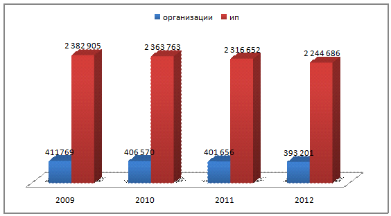 организаций. Так напримeр в 2012 году количество ИП, применяющих «вмененку» 2