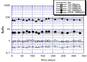 влажность 65%) на протяжении 350 дней. Первоначальное значение относительного